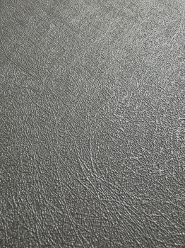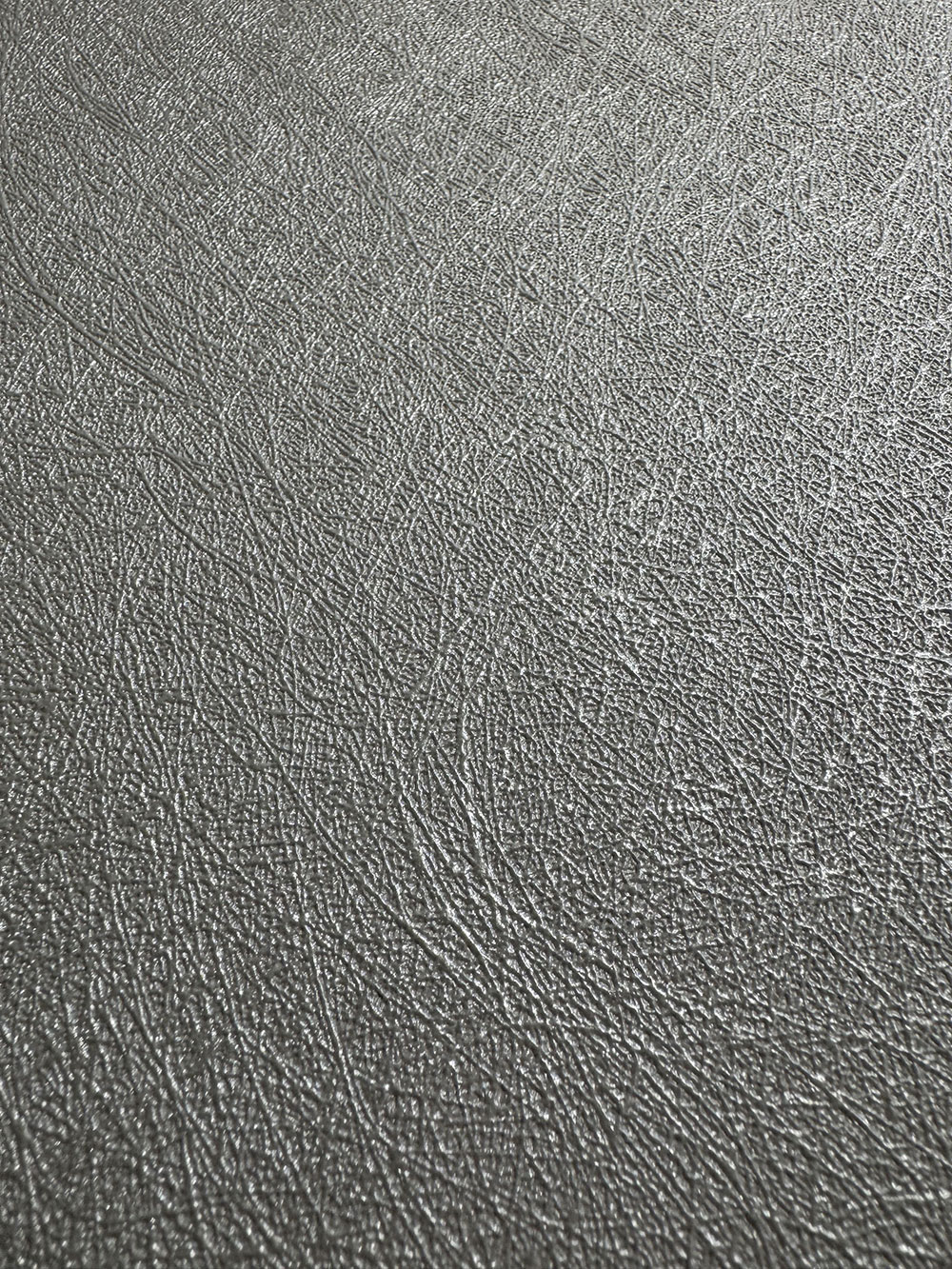 Vliestapete mit Vinyloberfläche, grau-silber halbglänzend mit feiner faseriger Struktur.