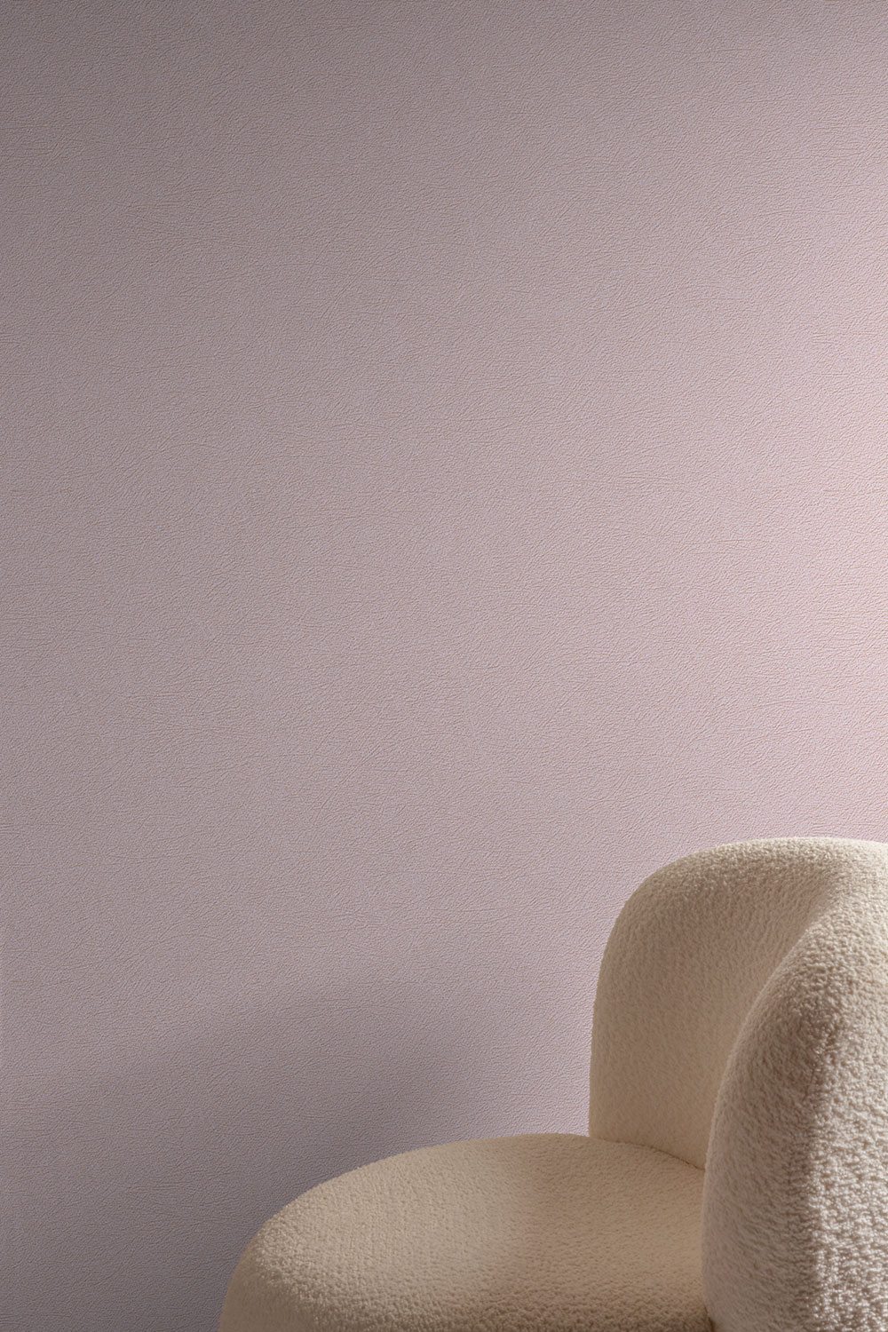 Vliestapete mit Vinyl-Oberfläche, rosa halbglänzend mit feiner Faserstruktur.