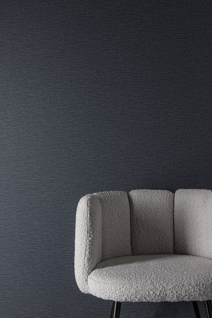 Vliestapete mit Vinyloberfläche, Imitation von gröberem Stoff in dunkelblauen Farbtönen.
