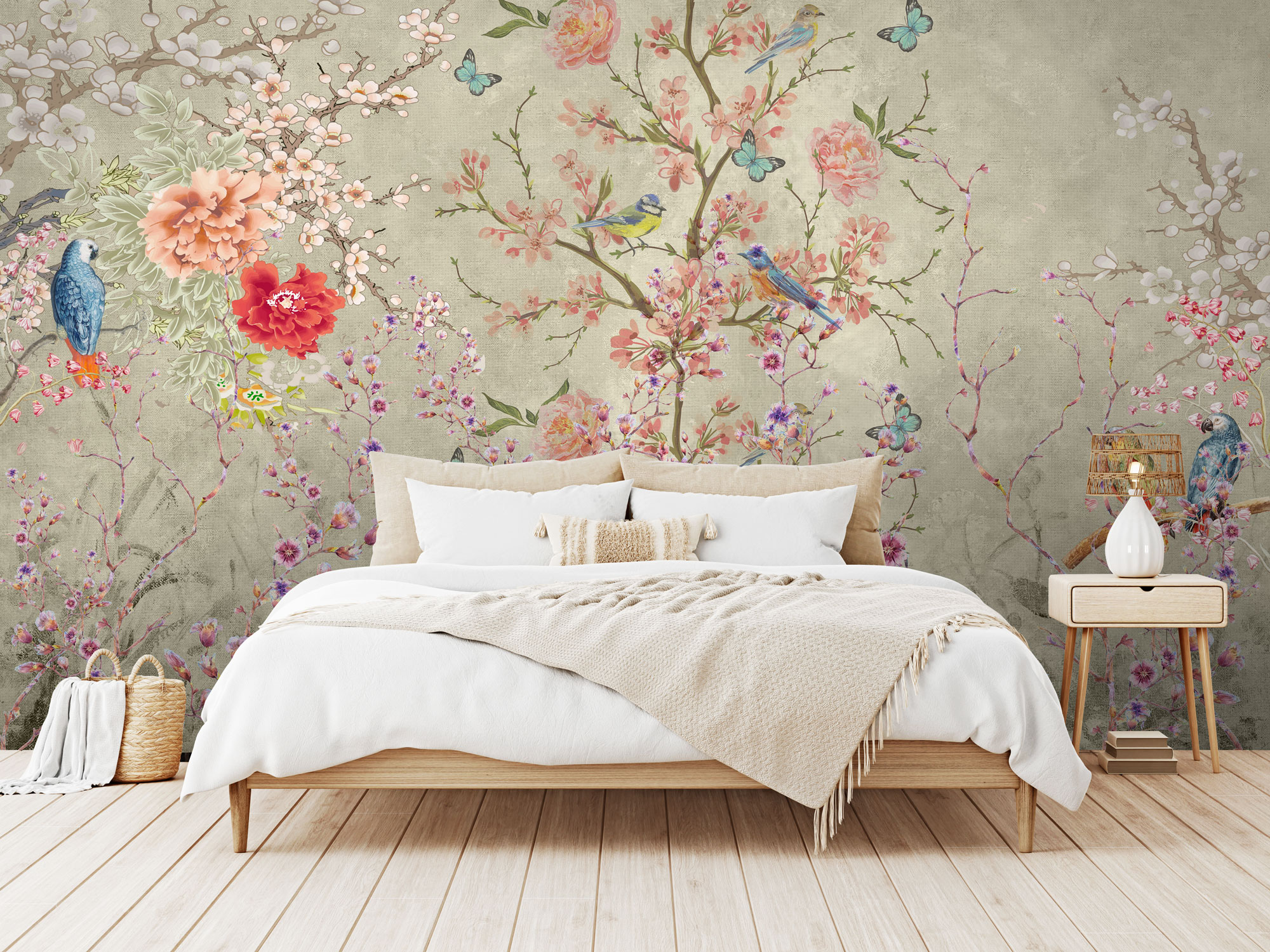 Vlies-Fototapete nach Maß, Blühende Zweige mit Vögeln, 10065, Vavex