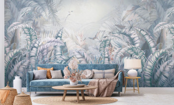Luxuriöse Vlies-Fototapete mit Vinyloberfläche, gröberer Textur, Blattmotiven.