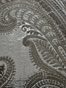 Luxuriöse Vliestapete mit Vinyloberfläche, Barockmuster in halbglänzenden Beige- und Brauntönen.