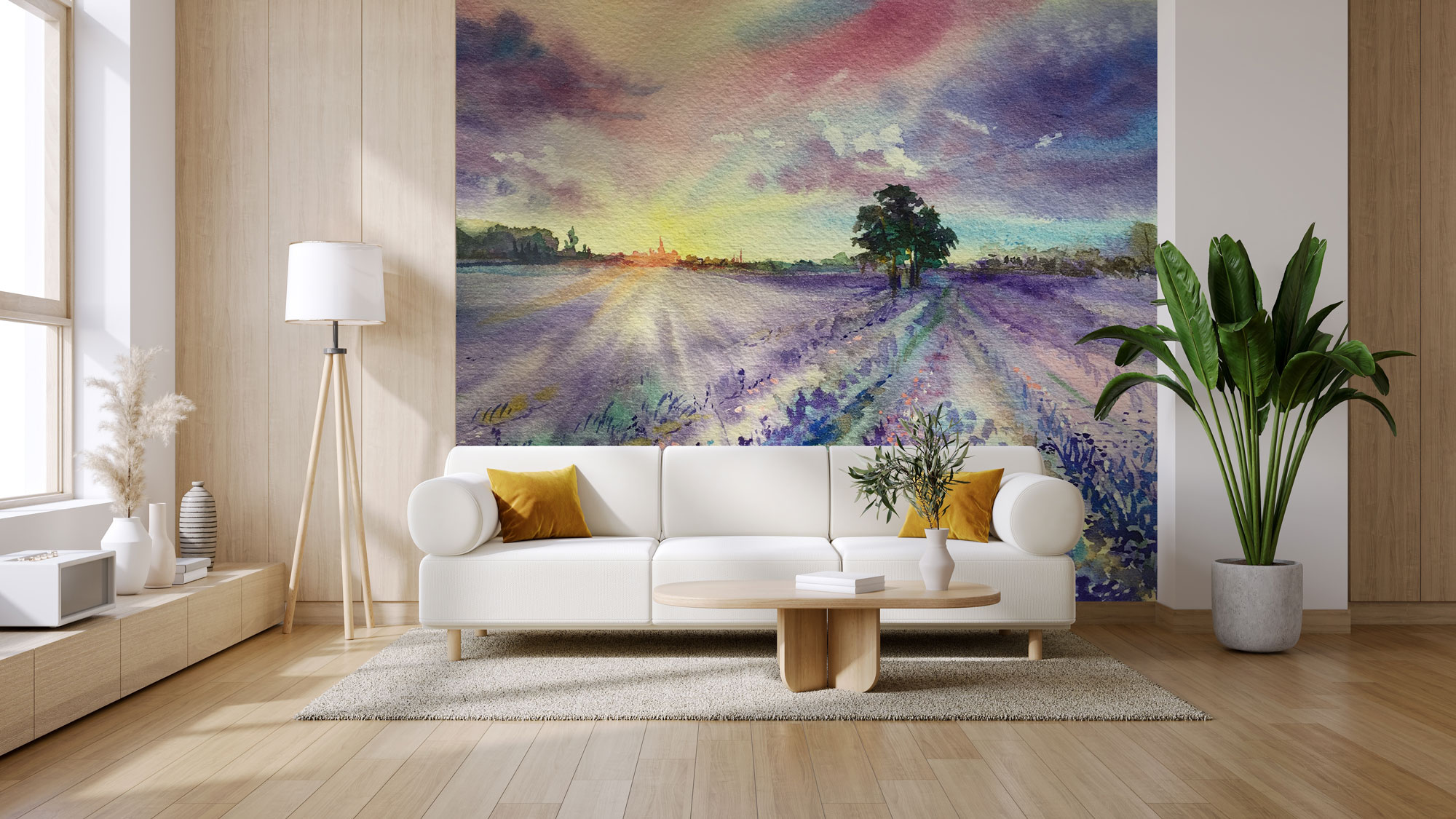 Vlies-Fototapete nach Maß, Aquarell Lavendelfeld, 10167, Vavex