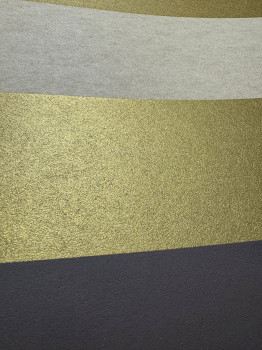 Vliestapete, Streifen in Braun-, Schwarz-, Ocker- und Goldtönen, matt, halbglänzend.