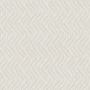 Eine leicht reliefartige Vliestapete mit einem Muster aus stilisierten Farnblättern in Grau- und Weißtönen.