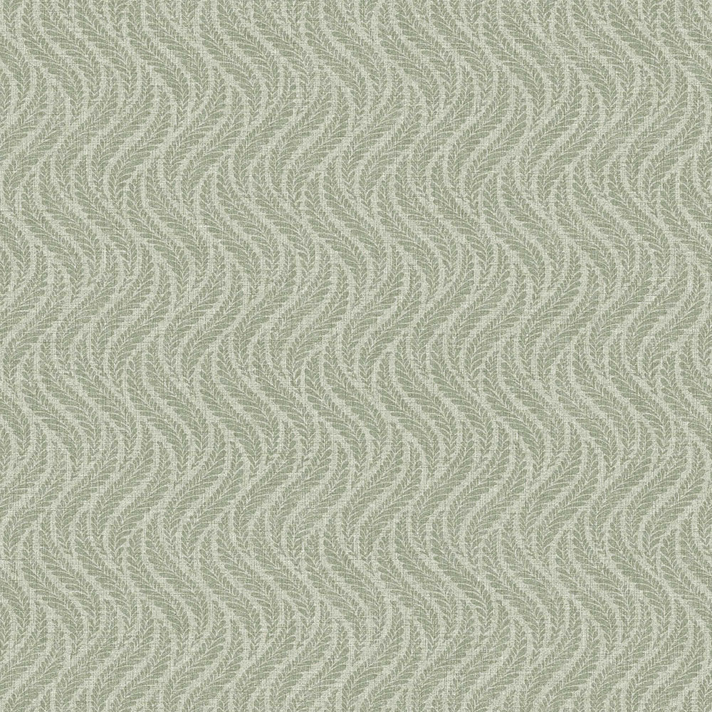 Eine leicht reliefartige Vliestapete für die Wand mit einem Muster aus stilisierten Farnblättern in verschiedenen Grüntönen.