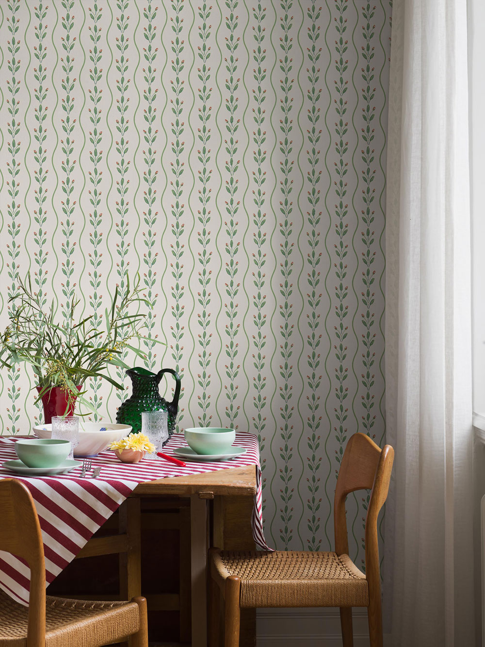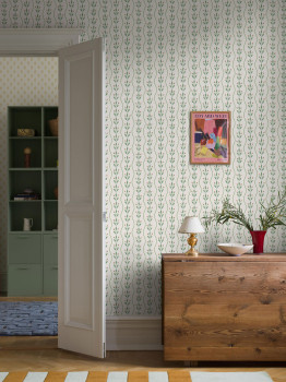 Hier finden Sie zarte Blumen- und Blattmuster, feine geometrische Formen und Illustrationen, die kleine Geschichten erzählen. Einige Designs stammen aus dem Archiv von Boråstapeter, andere sind neu – doch alle schaffen eine warme, wohnliche und angenehme Atmosphäre.