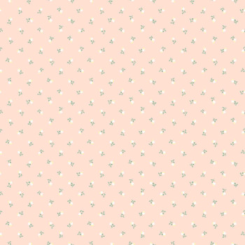 Vliestapete, rosa Hintergrund, Motiv aus kleinen Blümchen in Grün-, Gelb- und Weißtönen.