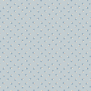 Vliestapete, blauer Hintergrund, Motiv aus kleinen Blümchen in Blau-, Rot- und Weißtönen.