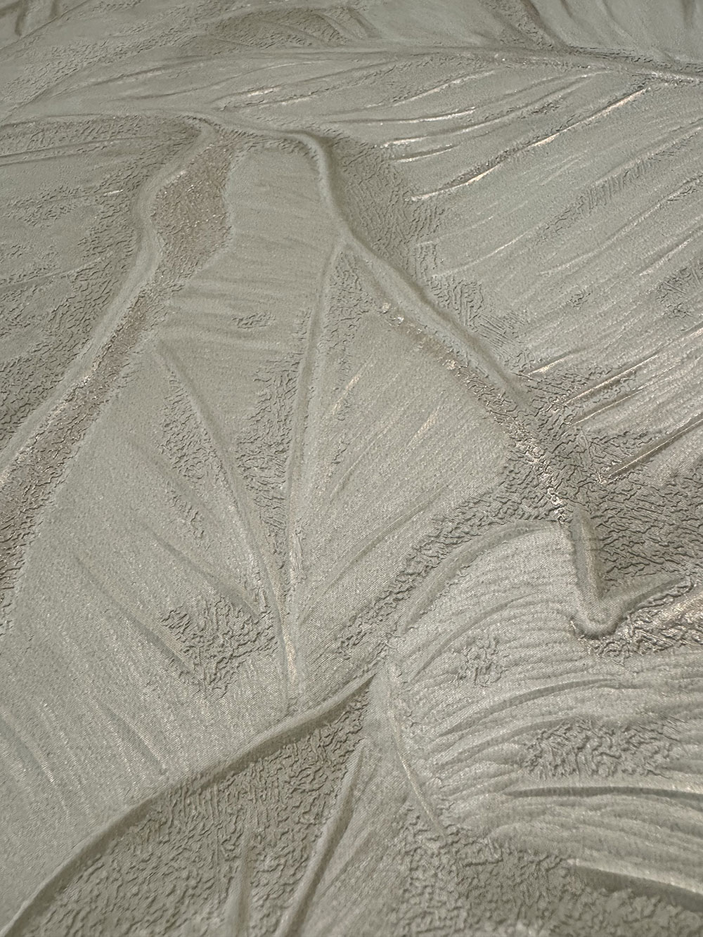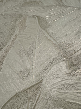 Luxus-Tapete mit Vinyloberfläche, plastische geprägte Blätter in Grüntönen, stellenweise mit zartem Halbschimmer.