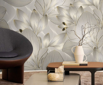Luxus-Bildtapete mit Vinyloberfläche, effektvolles Blatt- und Blumenmuster.
