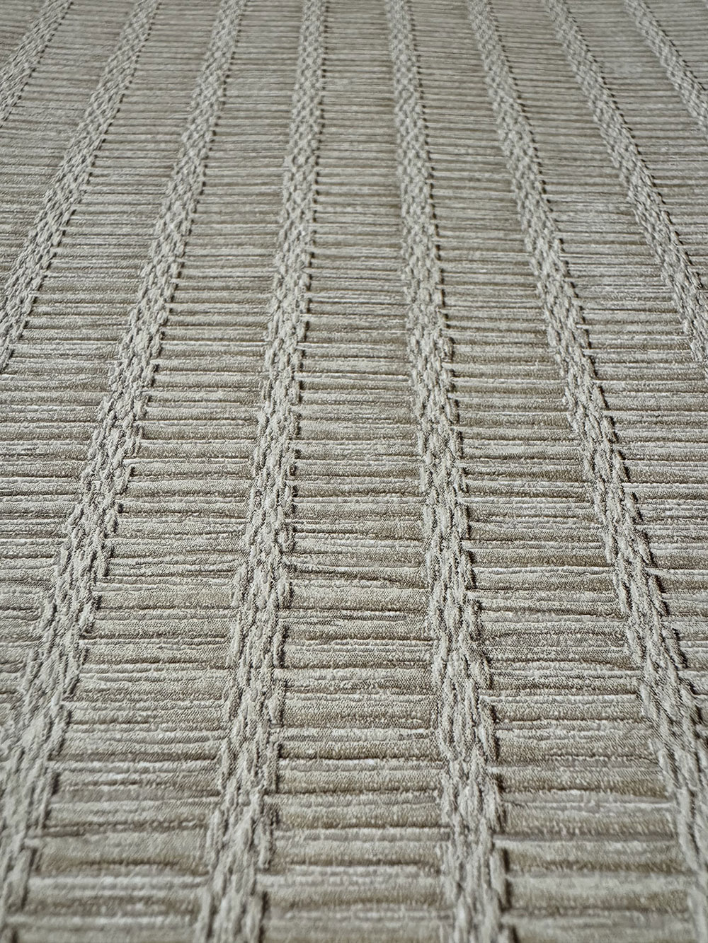 Vliestapete mit Muster, das an eine natürliche Matte erinnert, in Beige-/Sandtönen.
