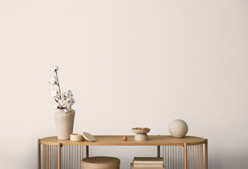 Vliestapete mit Vinyloberfläche, beige, mit unregelmäßigen horizontalen Streifen, feine Körnung.