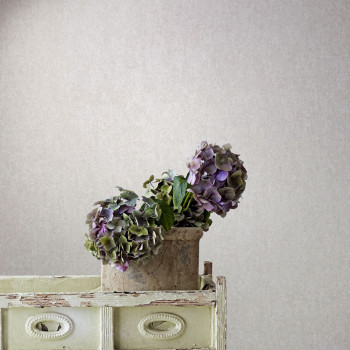 Vliestapete mit Vinyloberfläche, Dekor in Grau-Weiß mit Putzoptik, feine Struktur.