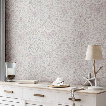 Tapete, grau-beige, rosa, Ornamente, 35150, City Romance, Marburg