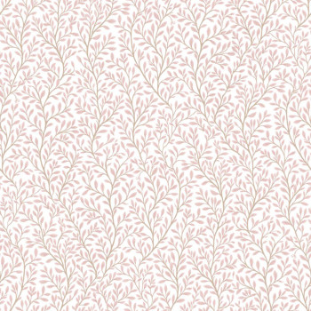 Luxuriöse Vliestapete mit Vinyloberfläche, Stoffstruktur, Motiv aus Zweigen mit Blättern, in Rosa- und Beigetönen.