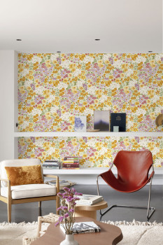 Inia-Tapeten bringen Wärme, Gemütlichkeit und eine angenehme Note in Ihr Zuhause. Sie finden hier Blumen- und Blattmuster in fröhlichen Farben sowie zarte Motive in gedeckten Tönen auf neutralem Hintergrund. Der moderne, leicht natürliche Charakter der Kollektion wird durch eine abstrakte Grasgewebestruktur unterstrichen, die an fein gewebte Naturmaterialien erinnert.