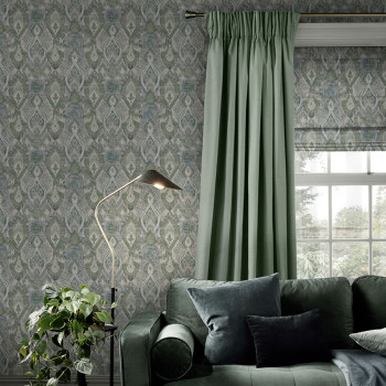 Tapete, grün-blau, Ethno-Muster, 142306, Jaipur, Graham Brown Premium