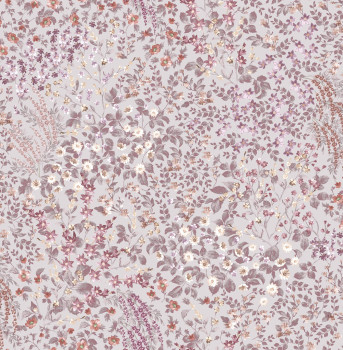 Vliestapete, rosa Hintergrund, Blumenmuster in Rosa-, Rot- und Lilatönen.