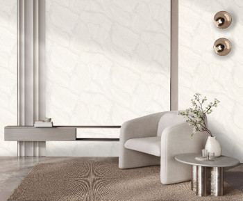 Luxuriöse Vliestapete mit Vinyloberfläche, plastischer Struktur, Marmoroptik, weißem Hintergrund und weißen plastischen Adern.