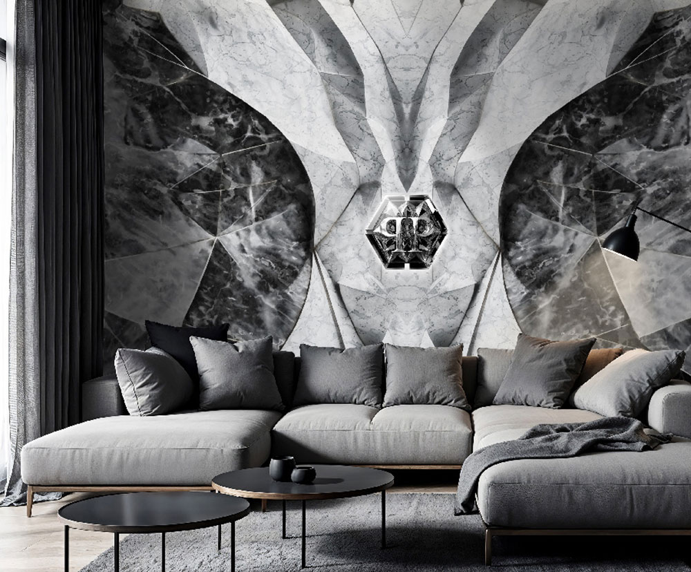 Fototapete, schwarz, grau, Marmor, Formen, Logo, Z81067, 3x3 m, Philipp Plein 2, Zambaiti Parati