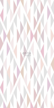 Vlies-Fototapete, deren geometrisches Muster von Diamanten inspiriert ist, in sanften Pastellfarben. 3 Paneele