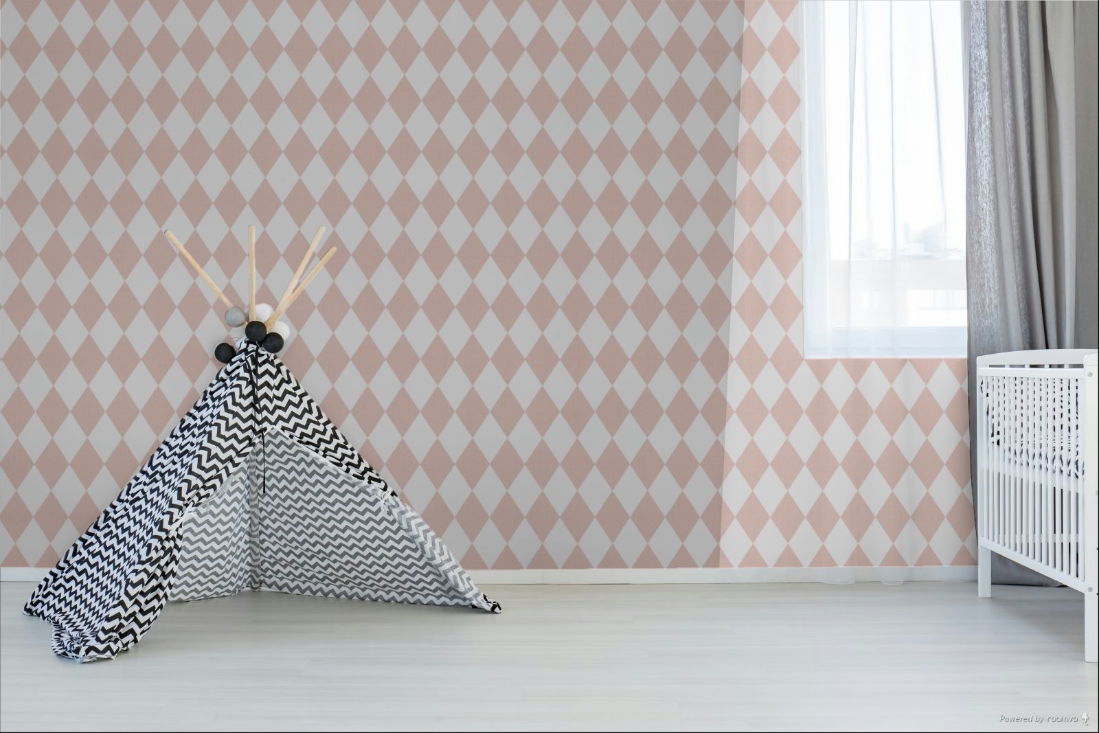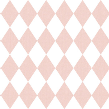 Vliestapete für die Wand, mit feiner Textilstruktur, rosa und weiße Rauten.