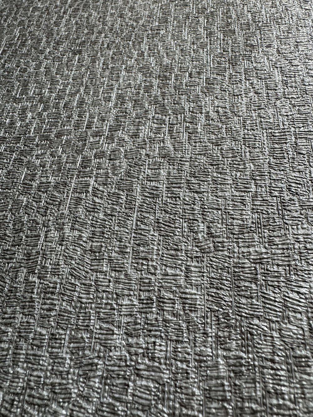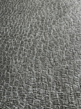 Luxuriöse Vliestapete in Silbertönen, gröbere Struktur.