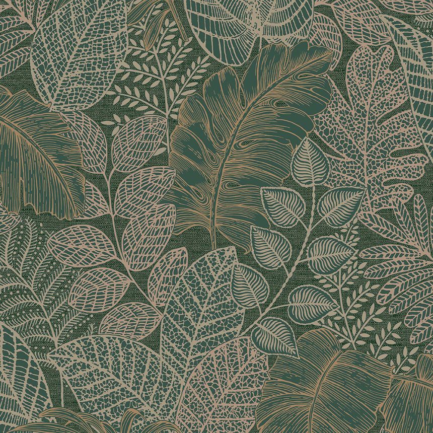 Vlies-, gestromt Tapete - Struktur feinem dunkelgrünem Stoff mit Reflexen in Roségold.