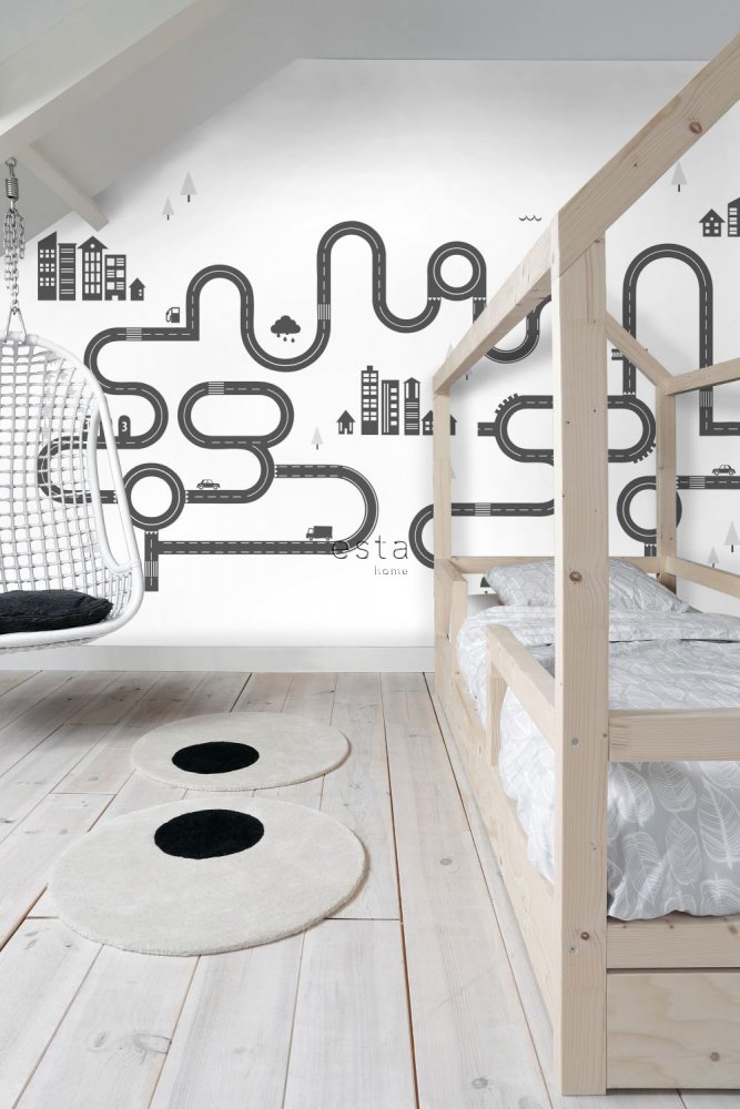 Schwarz-weiße Vliestapete für die Wand Straße 158835, 1,395 x 2,79 m, Little Bandits, Esta