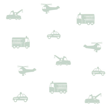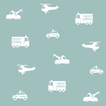 Blau-weiße Vliestapete für Jungen Autos, Hubschrauber 138916, Little Bandits, Esta