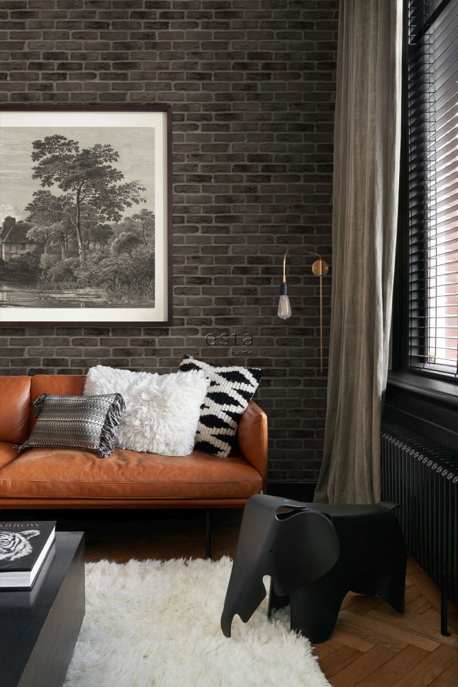 Tapete schwarzer Ziegel, Ziegelwand, Vliestapete 139167, Paradise, Esta Home
