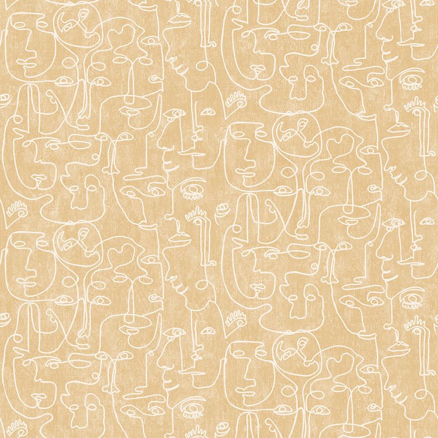 Grafische braun-beige Tapete - Konturen von Gesichtern.