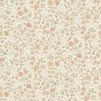 Beige Kindertapete - Blumen, Hasen JS3103, Jack´N Rose 2024 , Grandeco