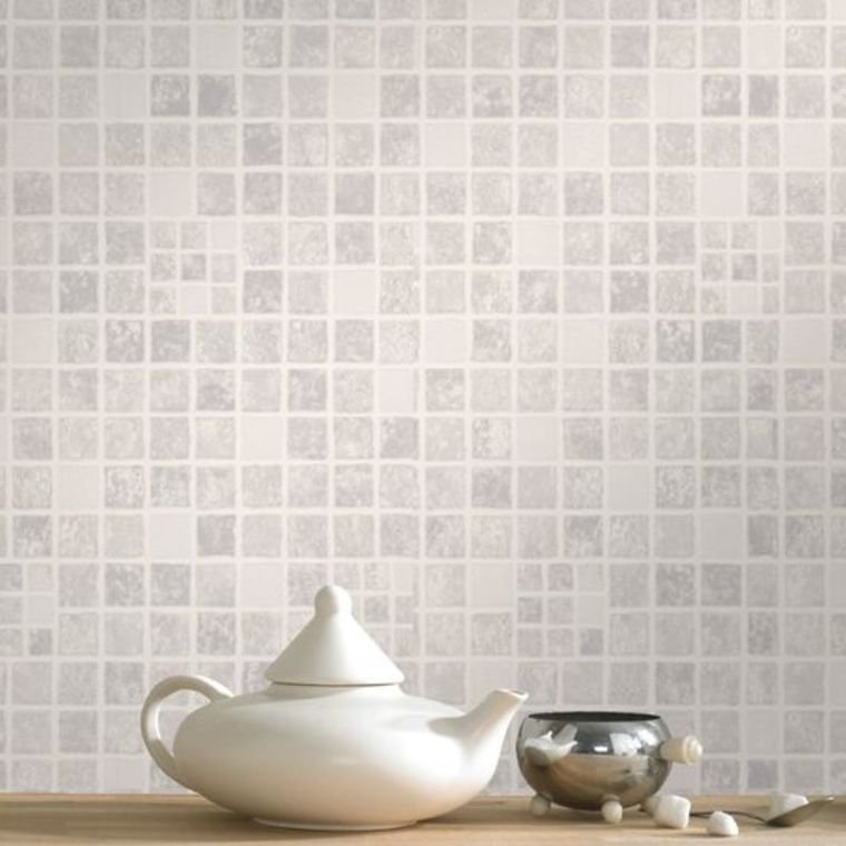 Beige Tapete mit grauen Schattierungen, Mosaik- und Fliesenoptik