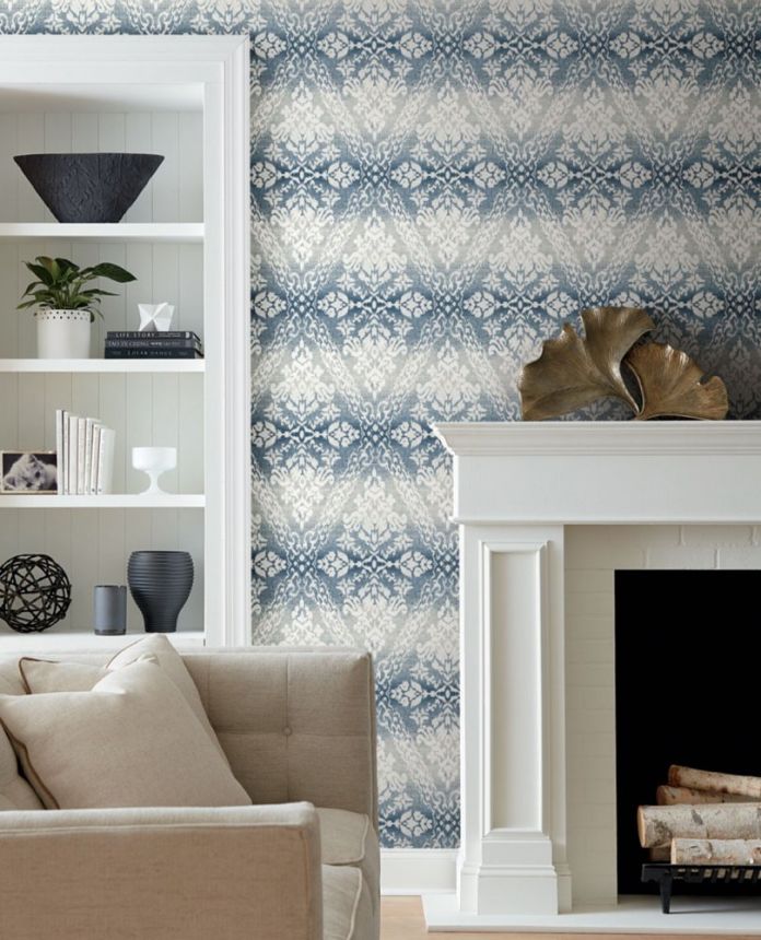 Blaugraue vorgeklebte Tapete, Damastmuster DM4932, Damask, York
