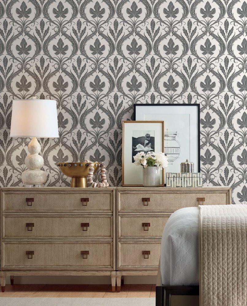 Schwarz-weiße vorgeklebte Tapete, Ornamente DM4926, Damask, York