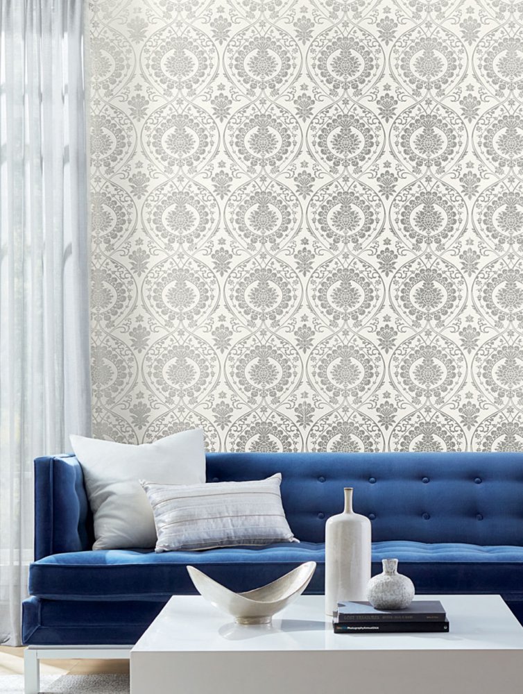 • Die Damask-Kollektion von vorgeklebten Tapeten und Papiertapeten ist voller luxuriöser ornamentaler Designs, die von Naturmotiven inspiriert sind.