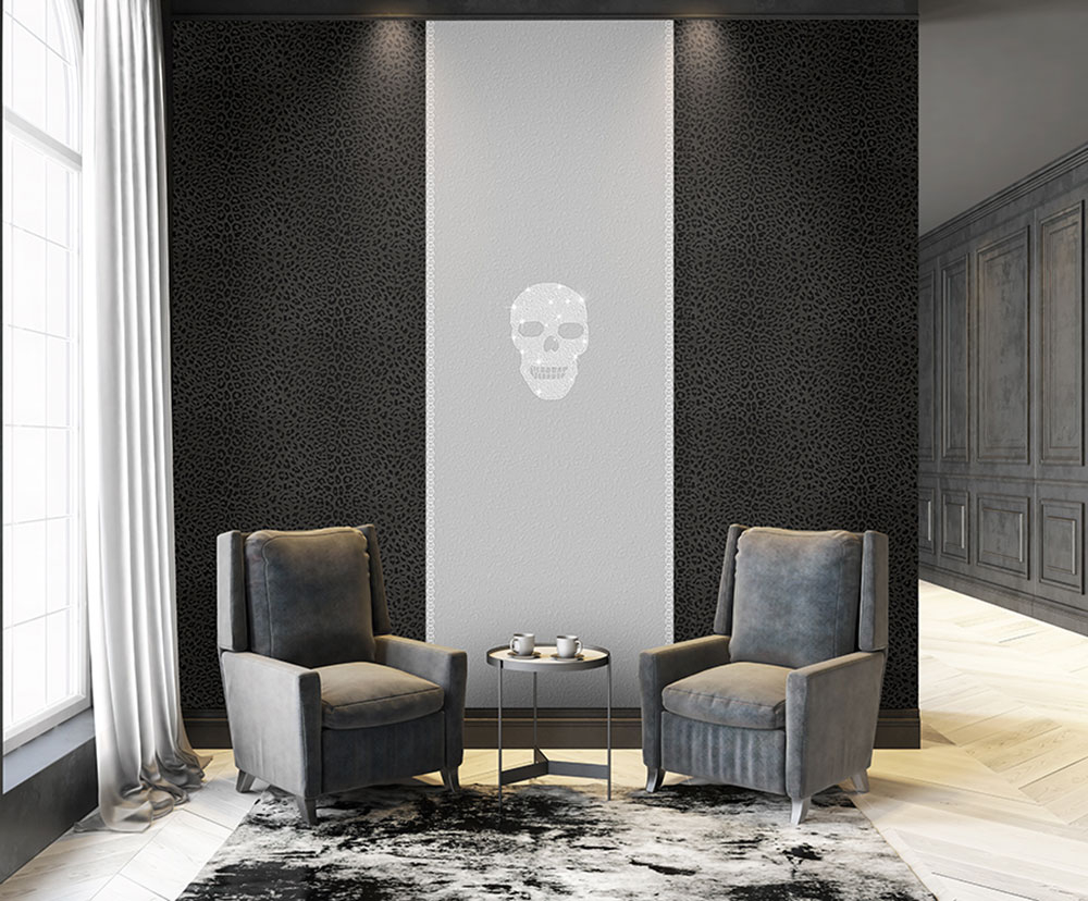 Durch die Kombination der präzisen Handwerkskunst von Zambaiti Parati und dem renommierten deutschen Modedesigner Philipp Plein wurde eine Kollektion ikonischer und luxuriöser Tapeten geschaffen, die von den Stoffen und Materialien inspiriert ist, die Philipp Plein in seinen modischen Bekleidungs- und Accessoire-Kollektionen verwendet. Die Tapetenkollektion ist vor allem dadurch einzigartig, dass sie Tier- und Struktureffekte auf die Tapeten überträgt. Die tropische Linie, die sich sanft durch die gesamte Kollektion zieht, wurde mit floralen Elementen gestaltet, ebenso die Linie mit der textilen Geometrie des Logos. Dies sind charakteristische Elemente, die sich mit ständiger Liebe zum Detail in die DNA der Marke eingebrannt haben.