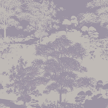 Vliestapete mit hochwertiger Papieroberfläche - weiß und silber geschichtete Baumsilhouetten.