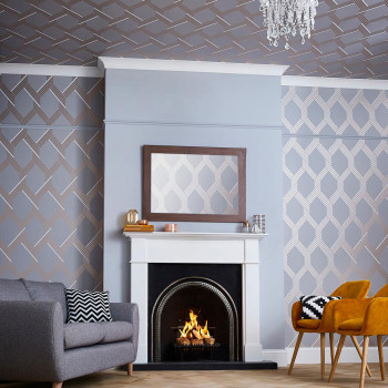 • Vector ist ein kühnes geometrisches Muster mit sauberen, klaren Linien und Symmetrieelementen, das nach einem archivierten Entwurf von Graham & Brown entworfen wurde. Vector, das heißt eine Größe, die sowohl eine Richtung als auch eine Größe hat, wurde in einer Farbpalette erstellt, die die moderne Stadt zu verschiedenen Tageszeiten widerspiegelt und moderne Metalltöne aufblitzen lässt.
