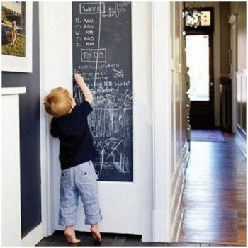 Selbstklebende Folie. Es kann mit Kreide beschrieben und gezeichnet und immer wieder ausradiert werden. Ideal für ein Kinderzimmer!