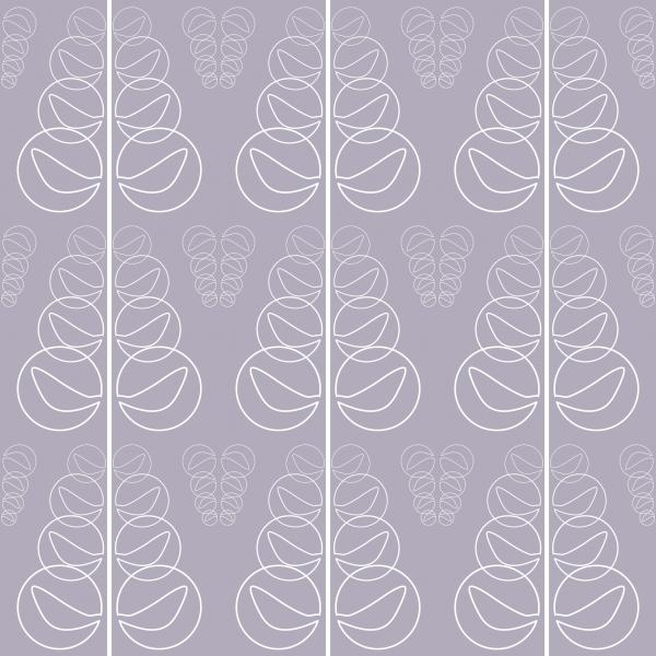 Pflanzenmotiv in Lila und Weiß auf Vliestapete.